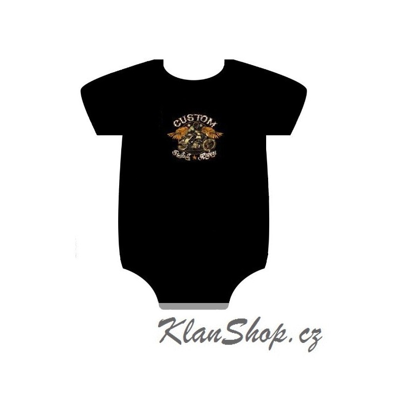 Dětské černé motorkářské (kojenecké) body (dupačky) s potiskem – Custom Fastest Rider Café Racer.