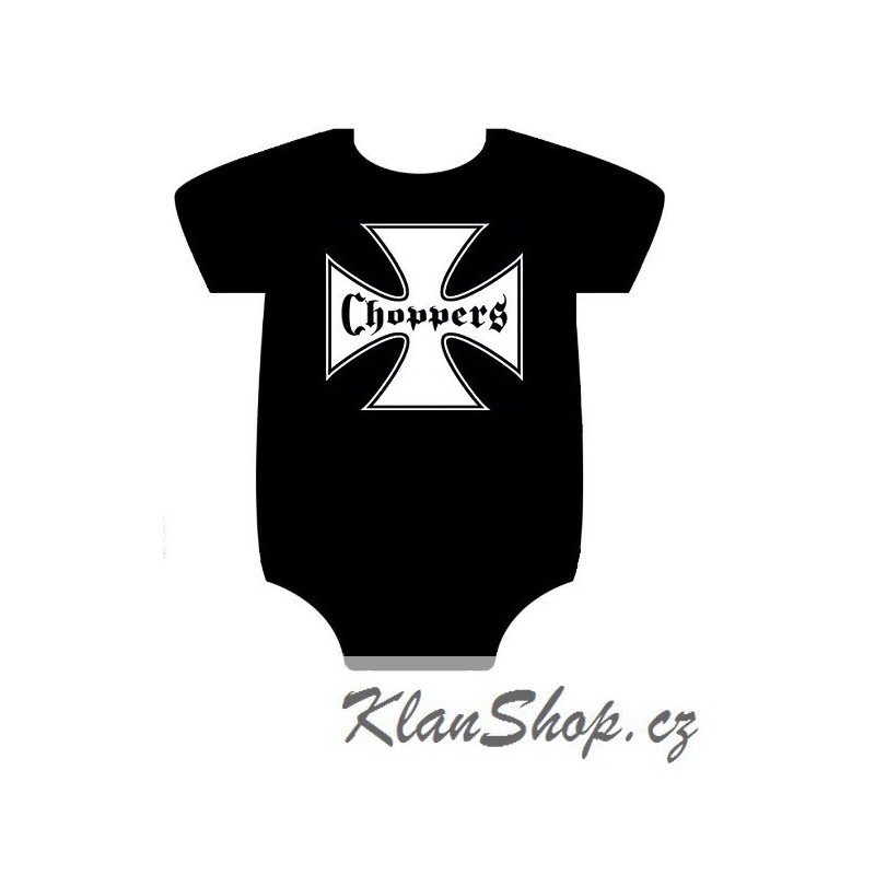 Dětské černé motorkářské (kojenecké) body (dupačky) s potiskem – Choppers kříž.