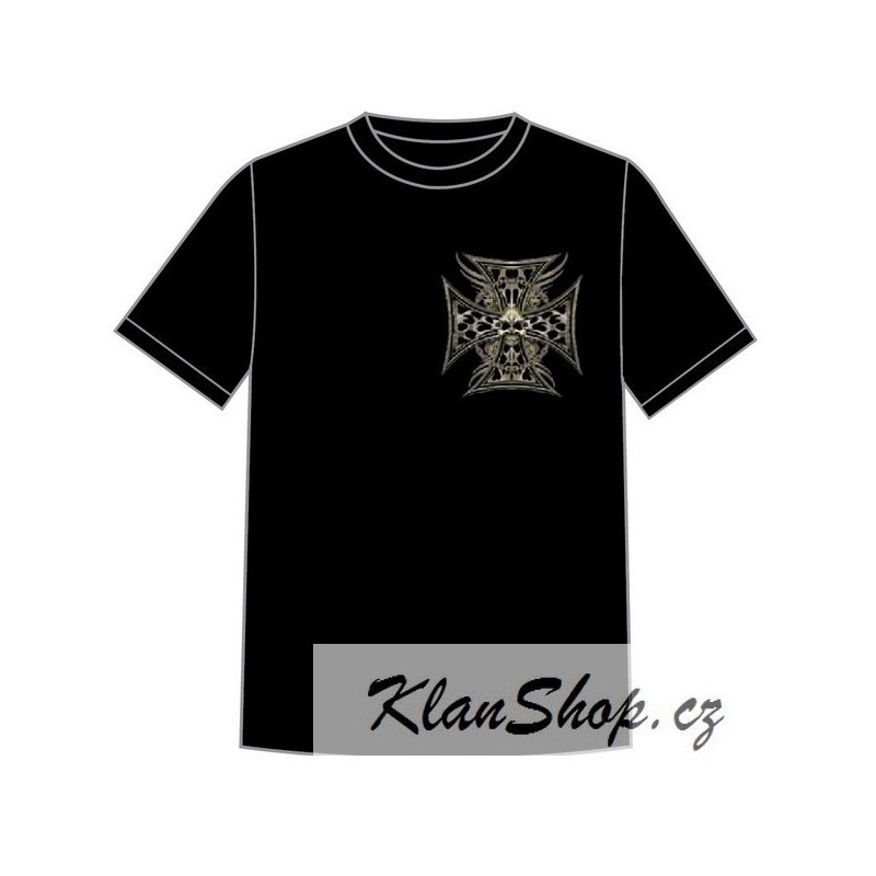 Dětské černé motorkářské tričko s krátkým rukávem a potiskem - Lebka v kříži.