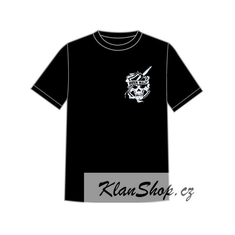 Dětské černé motorkářské tričko s krátkým rukávem a potiskem - Lebka s dýkou.