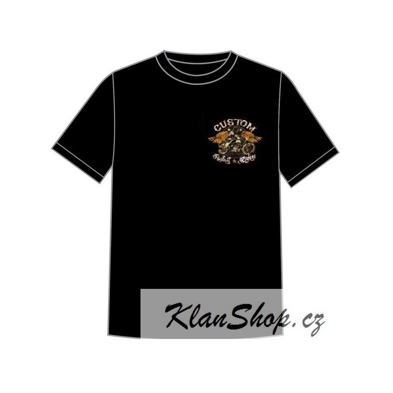 Dětské černé motorkářské tričko s krátkým rukávem a potiskem - Custom Fastest Rider Café Racer.