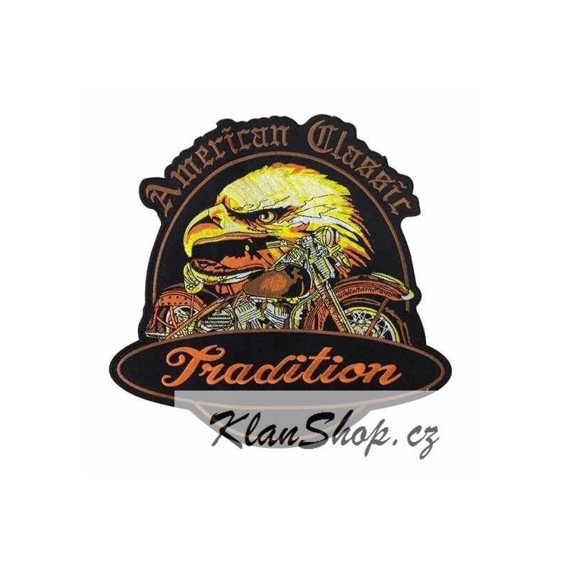 Motorkářská nášivka na kůži či textil - orlice s klasickou motorkou.