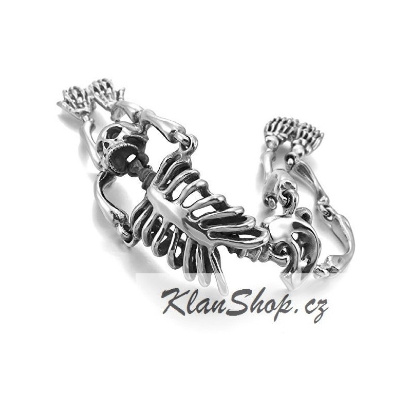 Náramek z chirurgické oceli ve tvaru kostlivce.