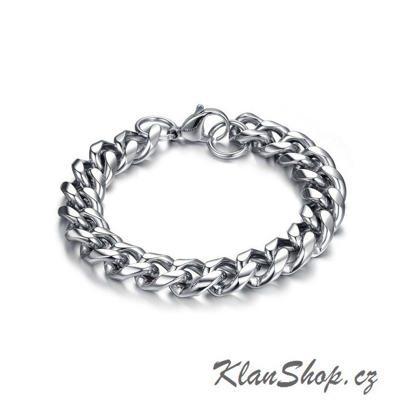 Náramek z chirurgické oceli, náramek složený z oček oblého tvaru.