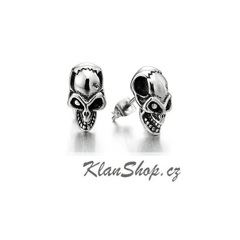 Ocelové náušnice (náušnice z chirurgické oceli) - lebky s černým kamínkem v jednom oku.