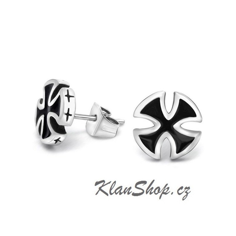 Ocelové náušnice (náušnice z chirurgické oceli) - malé černé kulaté (chopper, motorkářské, maltézské) kříže.