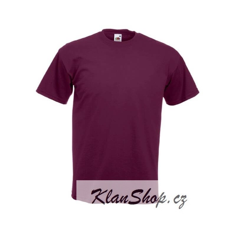 Silné vínové tričko bez potisku s krátkým rukávem od značky Fruit Of The Loom.