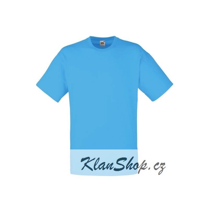 Pánské azurově modré tričko bez potisku, krátký rukáv, firma Fruit Of The Loom.