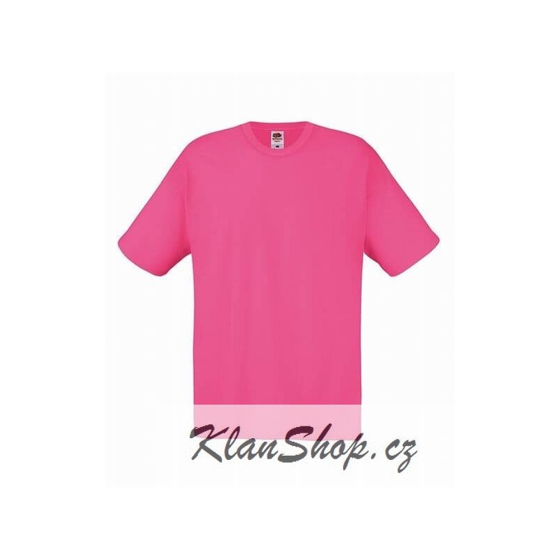 Lehčí letní fuchsiově růžové tričko bez potisku, pánský střih s krátkým rukávem, firma Fruit Of The Loom.