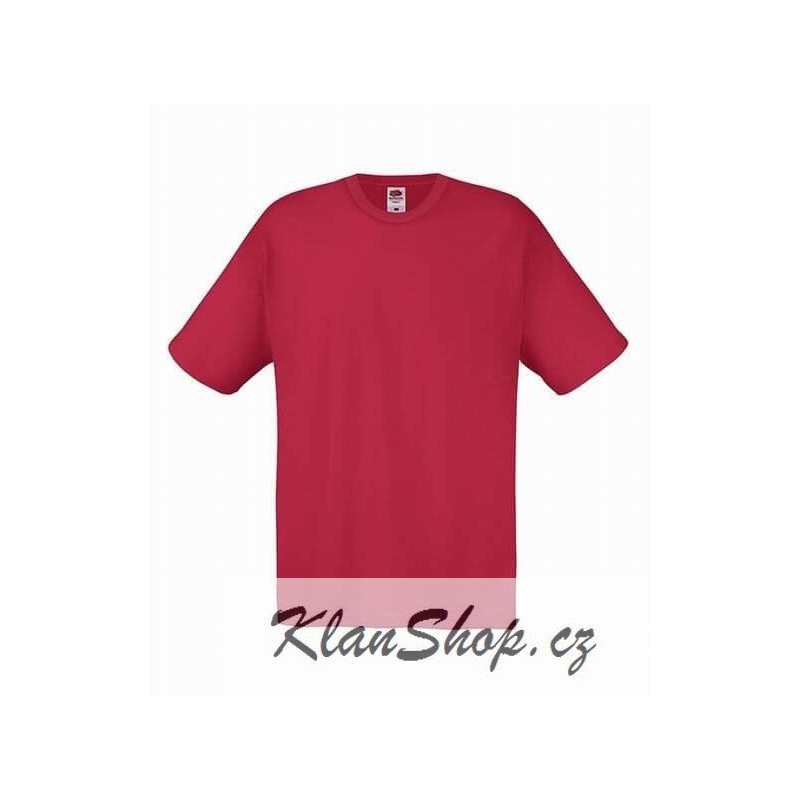 Lehčí letní cihlově červené tričko bez potisku, pánský střih s krátkým rukávem, firma Fruit Of The Loom.