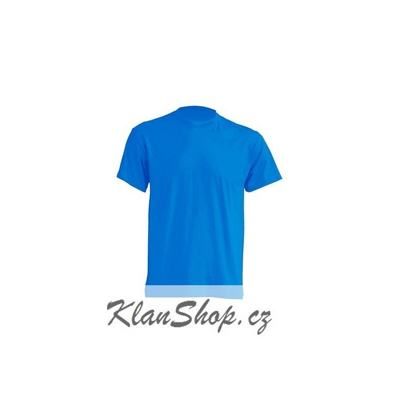 Lehké modré tričko pánského střihu s krátkými rukávy, bez potisku od firmy JHK.