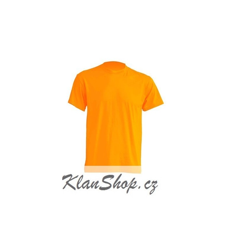 Lehké fluorové oranžové tričko pánského střihu s krátkými rukávy, bez potisku od firmy JHK.