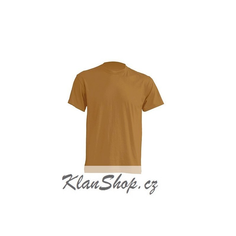 Lehké hnědé tričko pánského střihu s krátkými rukávy, bez potisku od firmy JHK.