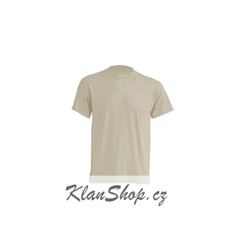 Lehké béžové tričko pánského střihu s krátkými rukávy, bez potisku od firmy JHK.