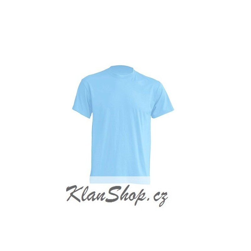 Lehké neonově světle modré tričko pánského střihu s krátkými rukávy, bez potisku od firmy JHK.