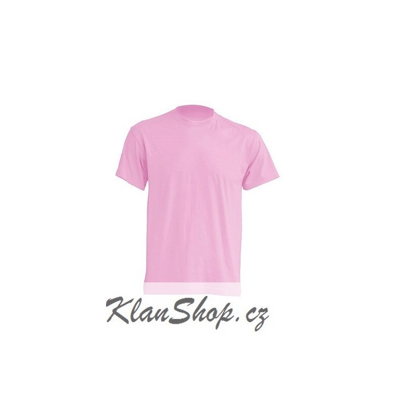 Lehké růžové tričko pánského střihu s krátkými rukávy, bez potisku od firmy JHK.
