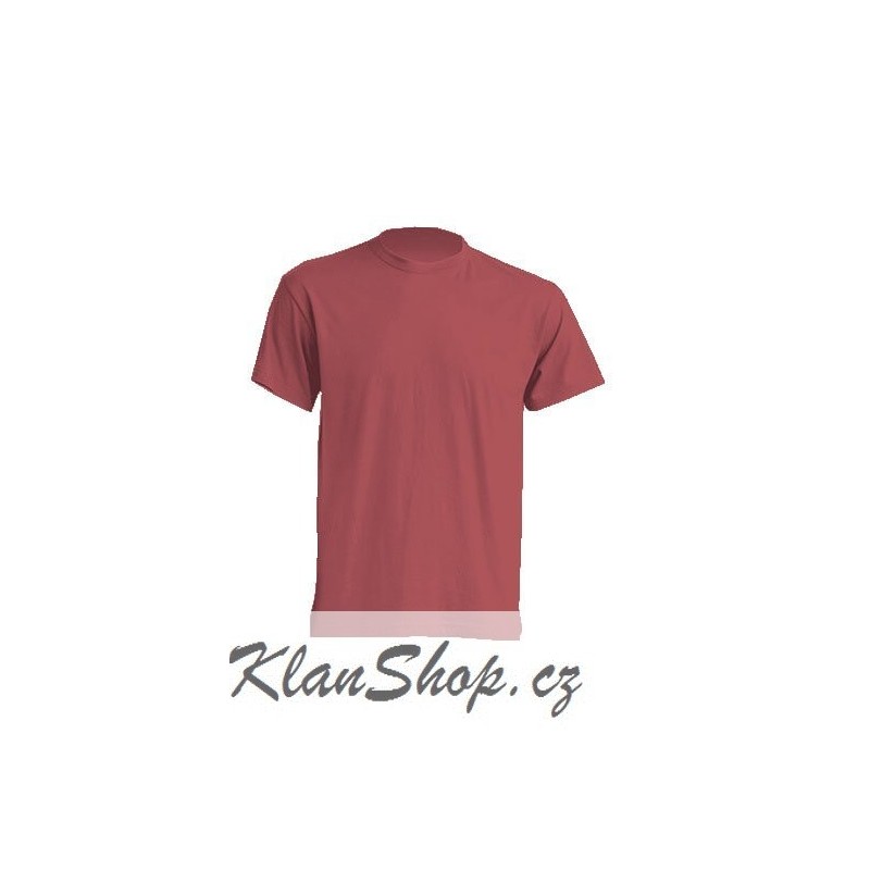 Lehké cihlově červené tričko pánského střihu s krátkými rukávy, bez potisku od firmy JHK.