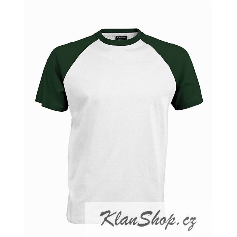 Pánské bílé tričko s krátkými zelenými rukávy, bez potisku od značky Kariban.