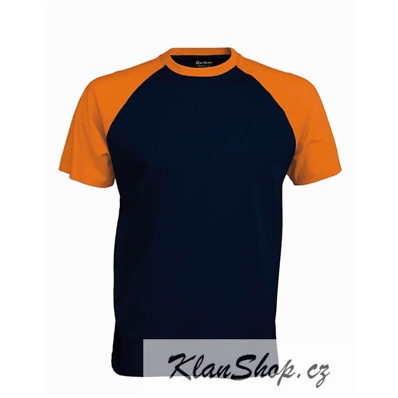 Pánské tmavě modré tričko s krátkými oranžovými rukávy, bez potisku od značky Kariban.