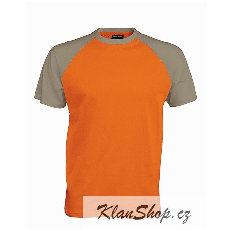 Pánské oranžové tričko s krátkými šedými rukávy, bez potisku od značky Kariban.