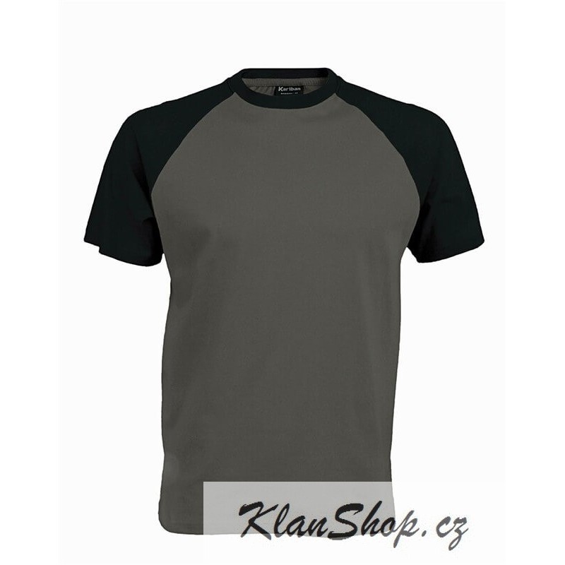 Pánské tmavě šedé tričko s krátkými černými rukávy, bez potisku od značky Kariban.