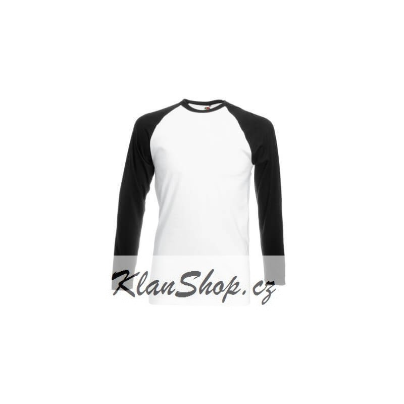 Pánské bílé tričko s dlouhými černými rukávy od značky Fruit Of The Loom, bez potisku.