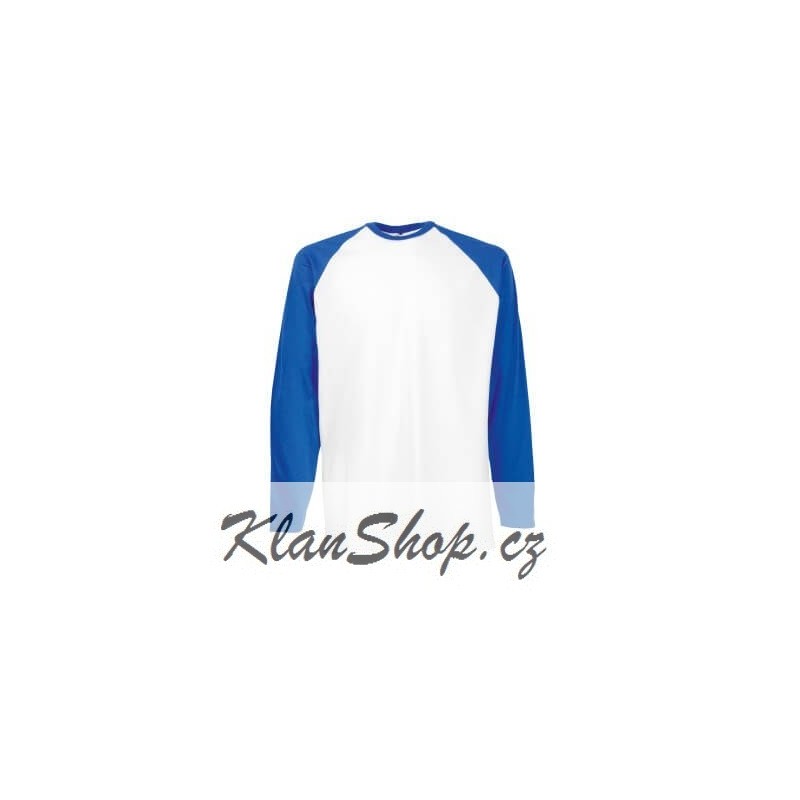 Pánské bílé tričko s dlouhými světle modrými rukávy od značky Fruit Of The Loom, bez potisku.