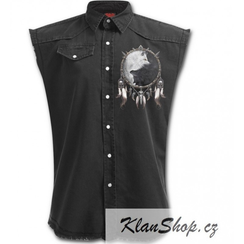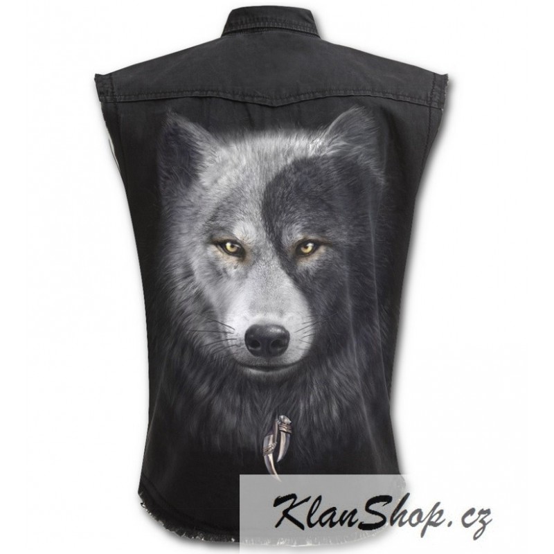 Pánská černá košile s potiskem, vlk, yin a yang.