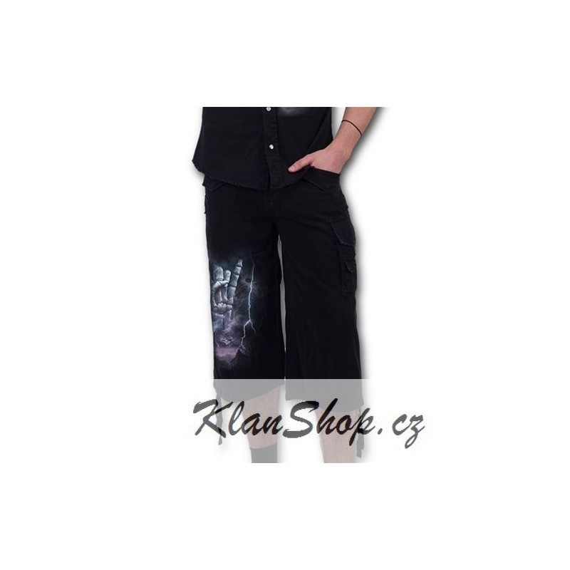 Pánské tříčtvrteční kraťasy s potiskem, černé - paroháč s gotickým křížem.