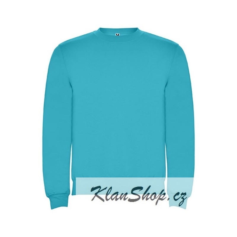 Pánská tyrkysová mikina bez kapuci, zipu a potisku od značky Roly.