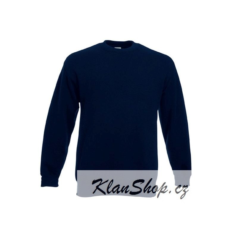 Pánská námořnická modrá mikina bez kapuci, zipu a potisku od značky Fruit Of The Loom.