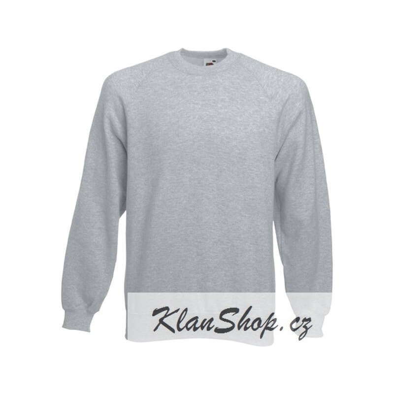 Pánská světle šedá mikina bez kapuci, zipu a potisku od značky Fruit Of The Loom.