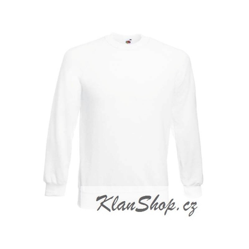 Pánská bílá mikina bez kapuci, zipu a potisku od značky Fruit Of The Loom.