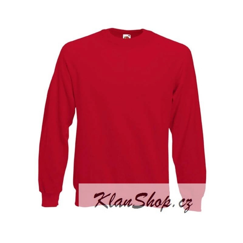 Pánská červená mikina bez kapuci, zipu a potisku od značky Fruit Of The Loom.