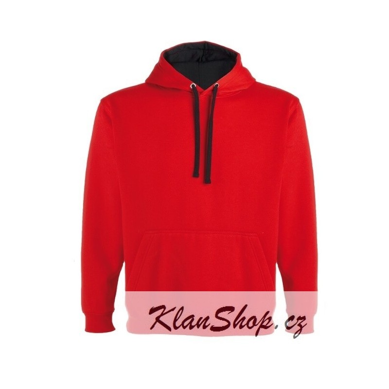 Pánská červená mikina s kapucí, bez zipu a potisku od firmy Roly.