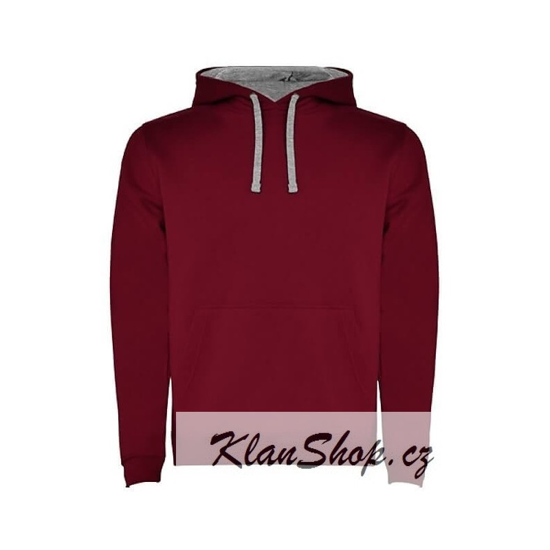 Pánská granátová červená mikina s kapucí, bez zipu a potisku od firmy Roly.