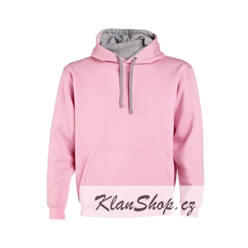 Pánská světle růžová mikina s kapucí, bez zipu a potisku od firmy Roly.