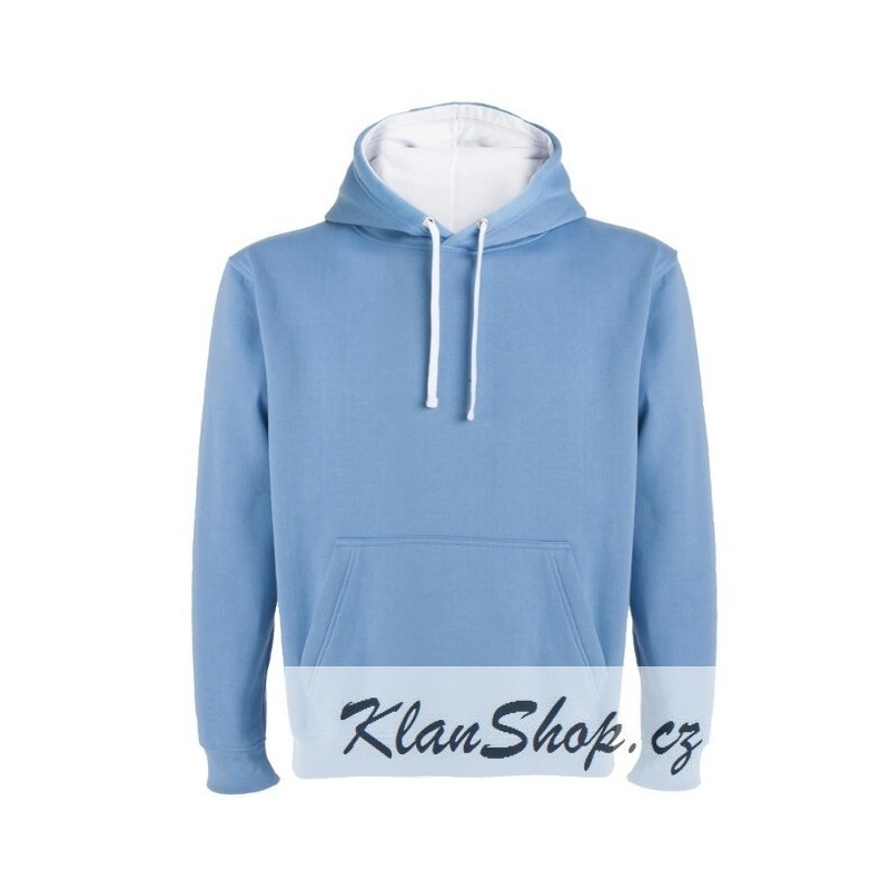 Pánská světle modrá mikina s kapucí, bez zipu a potisku od firmy Roly.