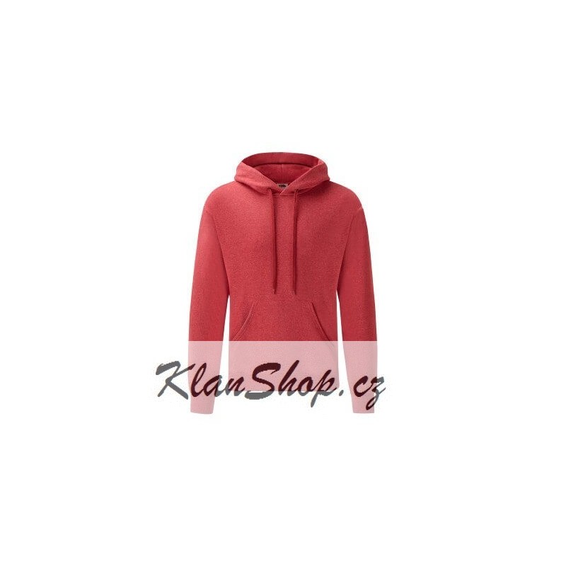 Pánská červená mikina s kapucí, bez zipu a potisku od firmy Fruit Of The Loom.