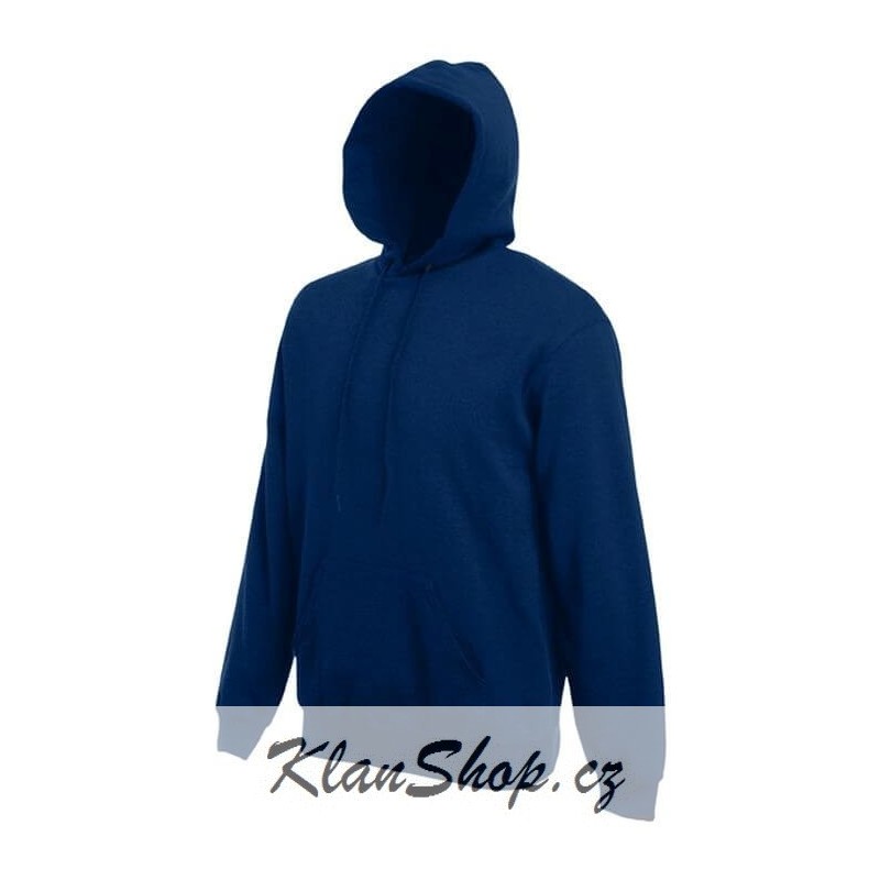 Pánská tmavě modrá mikina s kapucí, bez zipu a potisku od firmy Fruit Of The Loom.