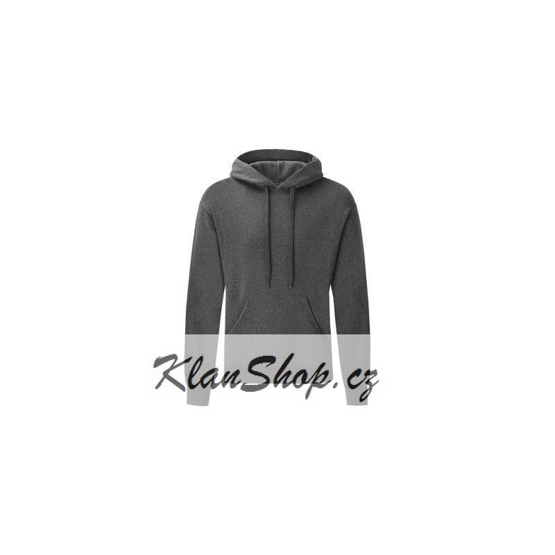 Pánská šedivá mikina s kapucí, bez zipu a potisku od firmy Fruit Of The Loom.