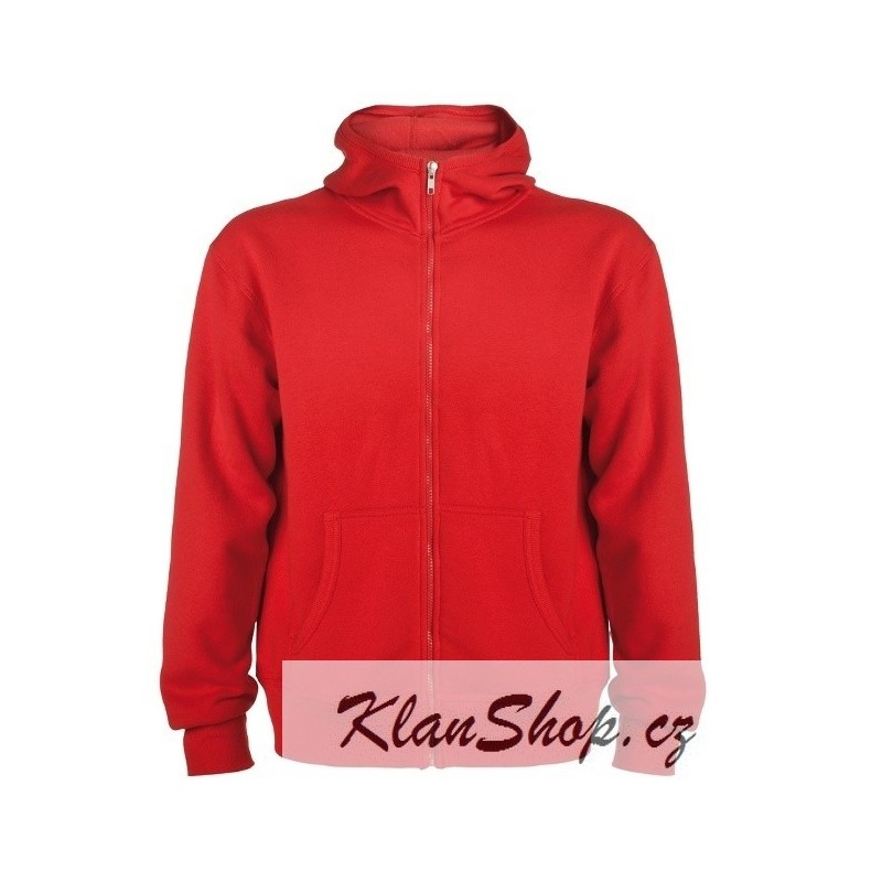 Pánská červená mikina na zip s kapucou, bez potisku od značky Roly.