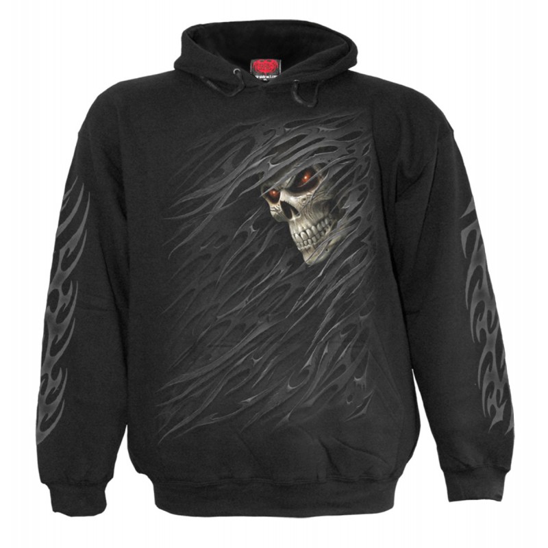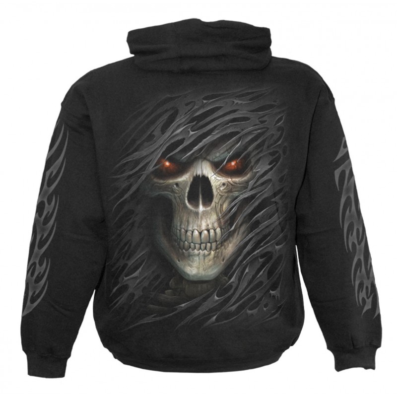 Pánská mikina bez zipu s kapucou a potiskem, tribal lebka.