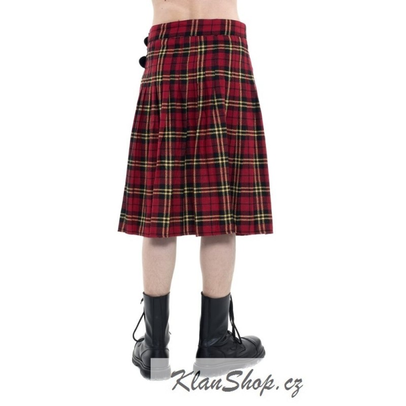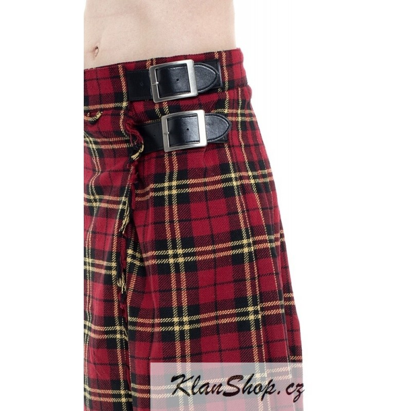 Pánský kostkovaný červený kilt se žlutými pruhy s pásky.
