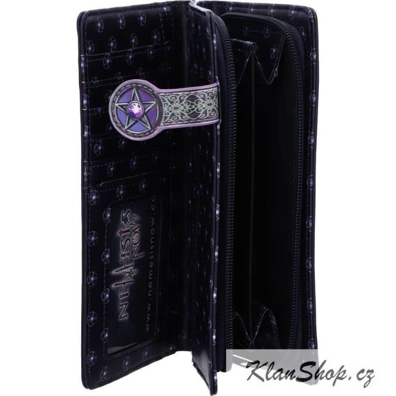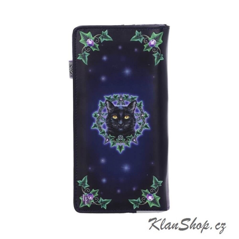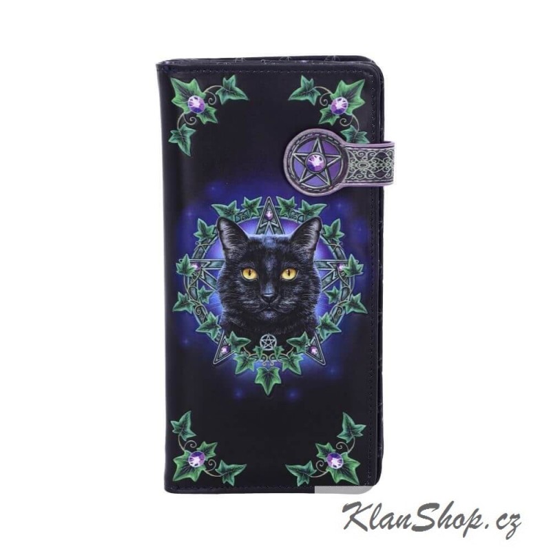 Dámská peněženka (portmonka) - černá kočka s pentagramem a břečťanovými listy.