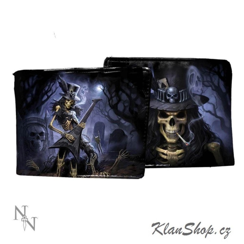 Peněženka (peněženka pro muže) - kostlivec s cylindrem a kytarou.
