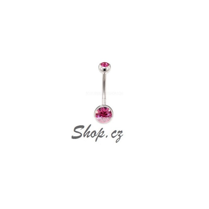Piercing z chirurgické oceli vhodný do pupíku - tyčka ve tvaru banánku, růžové kamínky na obou koncích.