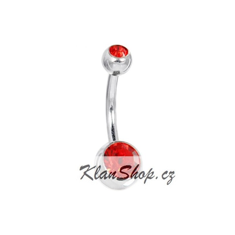 Piercing z chirurgické oceli vhodný do pupíku - tyčka ve tvaru banánku, červené kamínky na obou koncích.