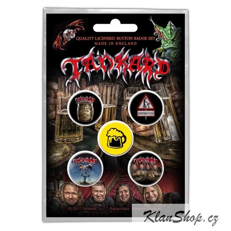Oficiální merchandise placky (buttony) s kapelou - Tankard One Foot In The Grave.
