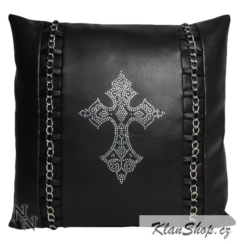 Dekorační polštář (polštář s obrázkem) - syntetická kůže - diamantový kříž s řetězy.